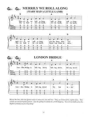 This instruction book for beginning lap dulcimer in DAD tuning is unique in two ways. First, it instructs the beginning student in the increasingly popular DAD tuning. Secondly, the author, a classroom music teacher, has carefully and systematically layered the lessons to guide the student through familiar songs while teaching skills and musical concepts. This not only enables the student to enjoy the lap dulcimer but also enhances total music understanding and participation. The accompanying audio provides instructional dialogue and demonstrations of the techniques and songs included in the book. Additional hints and exercises are presented in an inviting and encouraging conversational text. Includes access to online audio.