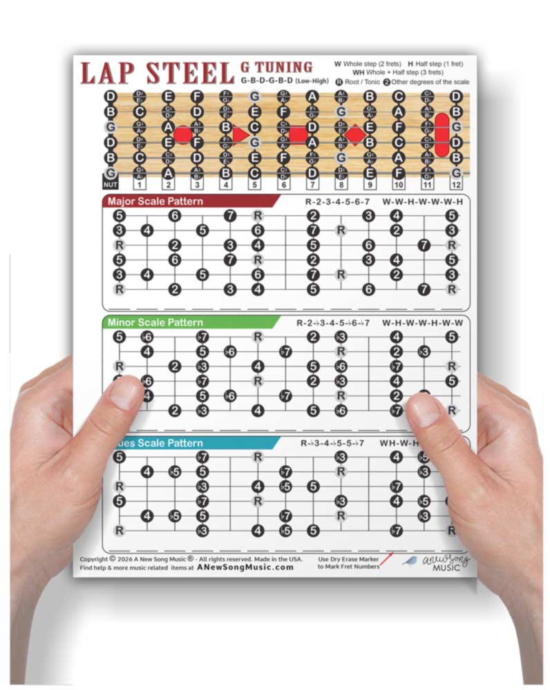 G HIGH BASS (GBDGBD) SPECIFIC: Designed specifically for the most popular tuning in Bluegrass and Resonator guitar, allowing you to master the intervals used by the genre's top professionals.