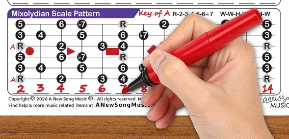 Choose from the Major, Minor, Blues, or Mixolydian patterns provided on this double-sided chart to suit your song’s genre.