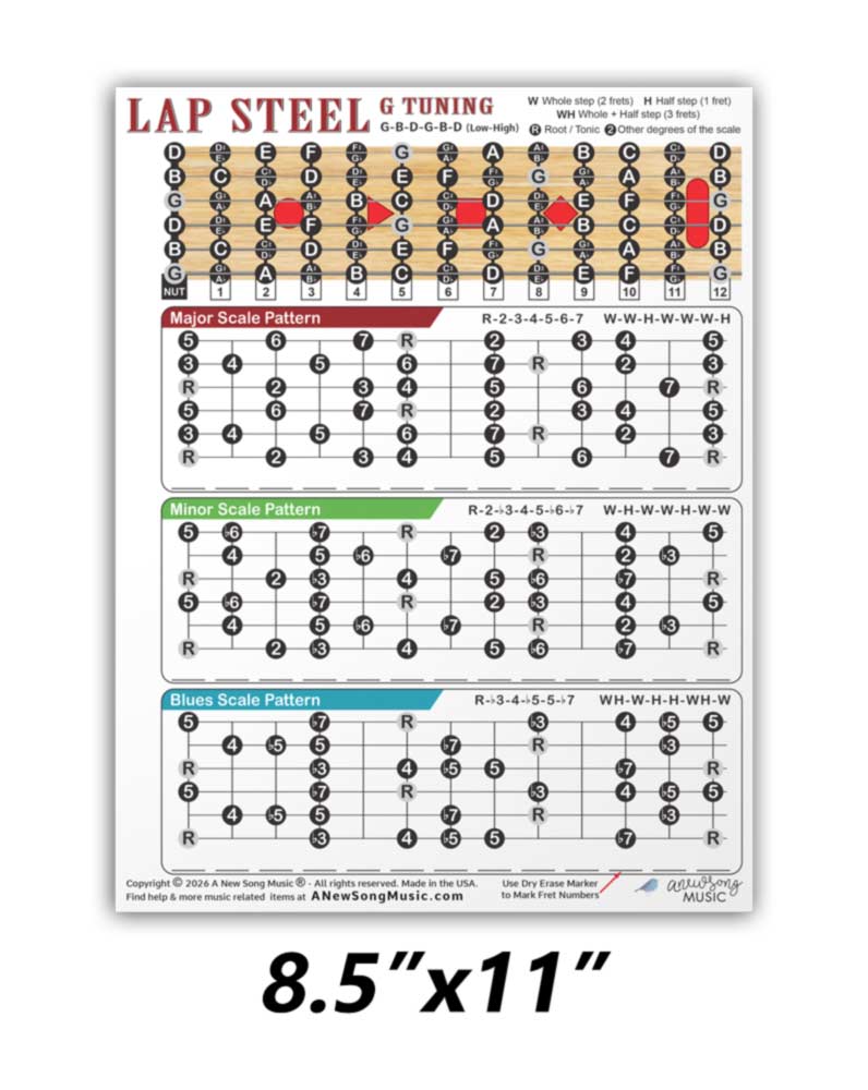 Built for the Studio and the Classroom This isn't just a piece of paper; it's a durable, professional-grade reference. Printed on both sides, the chart provides a comprehensive view of the fretboard alongside multiple scale patterns, including Major, Minor, Blues, Mixolydian, Minor Pentatonic and Major Pentatonic. Its 8.5" x 11" size makes it perfect for music student notebooks—simply slide it into the front cover or hole-punch it to keep it with your sheet music.