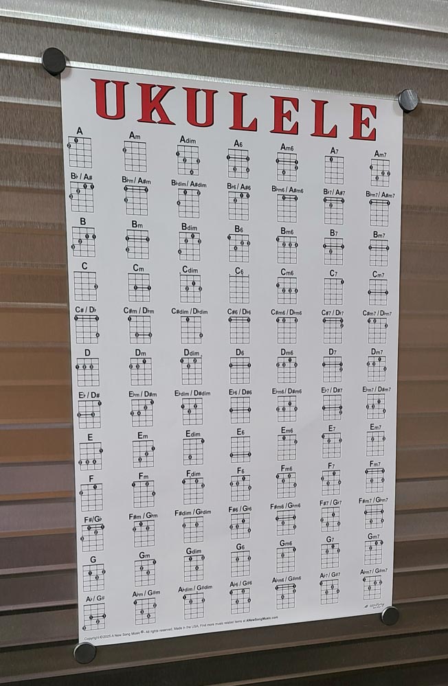 Stop searching for chord fingerings and start playing! This 11"x17" Ukulele Chord Chart is the ultimate visual guide for beginner and intermediate players. Featuring dozens of essential chords—including major, minor, 7th, 6th, and diminished—this easy-to-read poster makes learning songs simple. Printed on durable 80lb gloss paper with a lamination option available, it's the perfect reference tool for your music room, studio, or classroom. Proudly printed in the USA.
